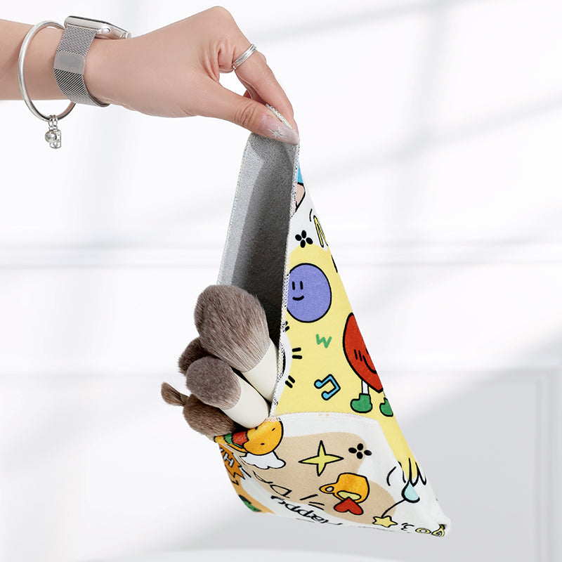 Unlike traditional cosmetic bags, our magic cloth lays out flat.
