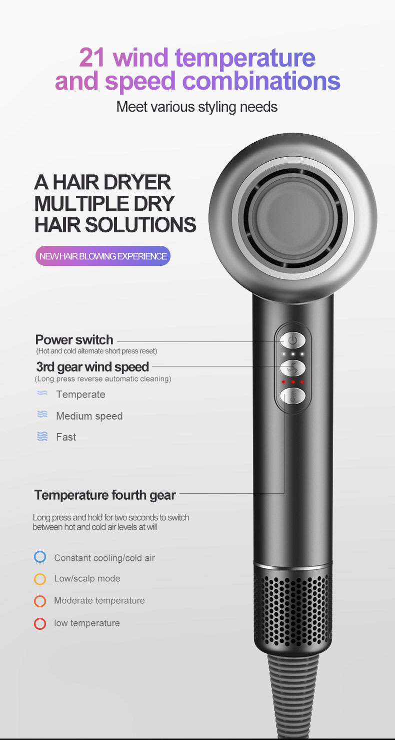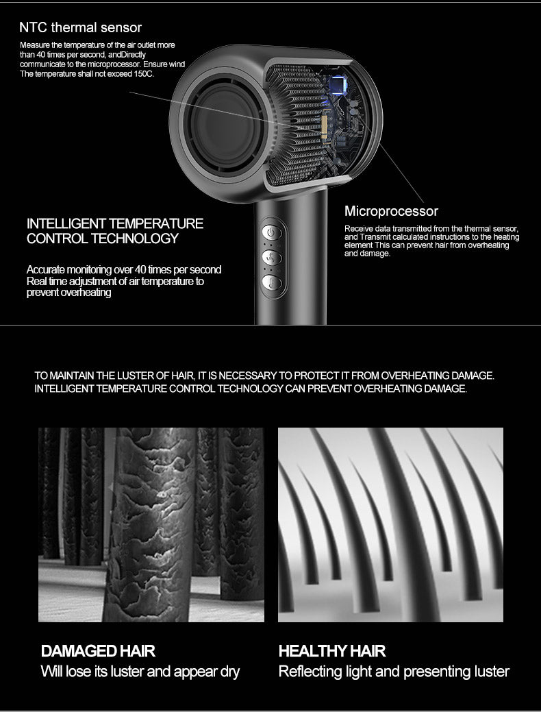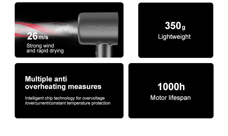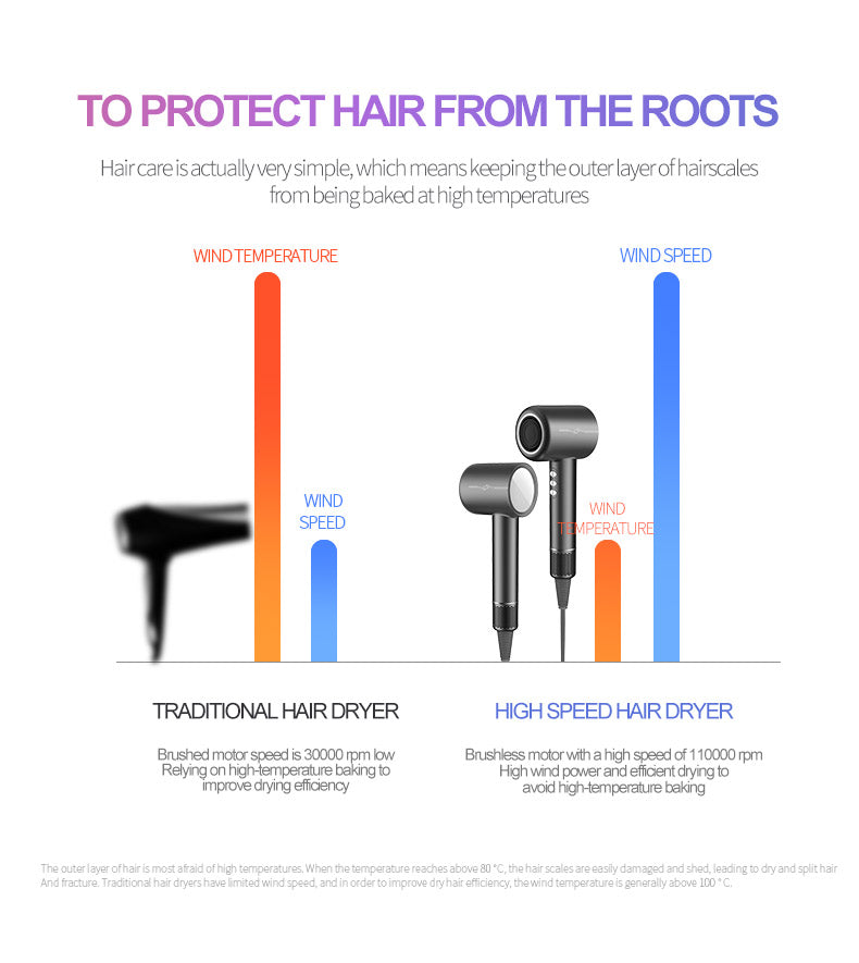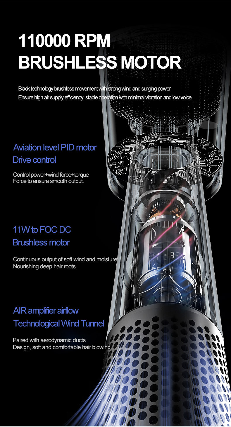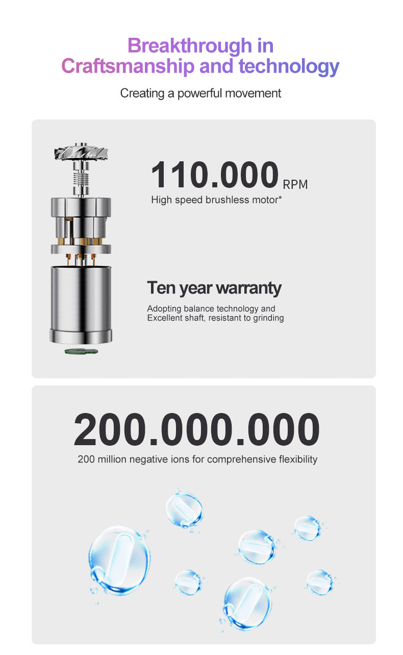 Multiple noise reduction modules cooperate with technology to let you experience as low as 59dBA decibels, no noise and return to tranquility. Comfortable blowing frequency says goodbye to sharp ear noise